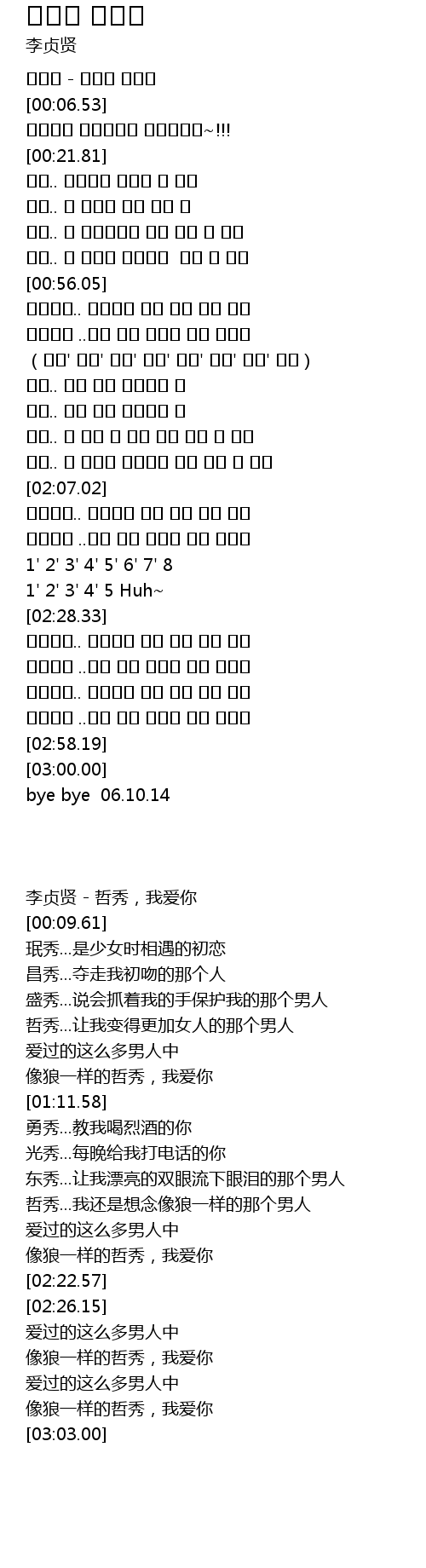 | [00:02.86] | 李贞贤 - 哲秀,我爱你 |