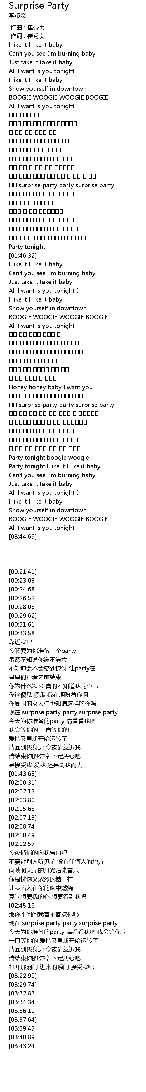 | [00:51.68] | 不知道会不会感到惊讶 让party在 |