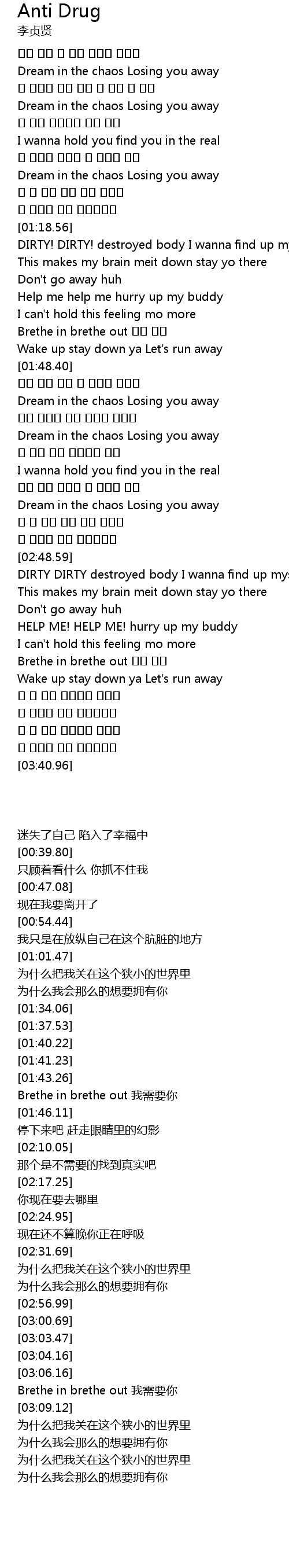 | [01:45.00] | Brethe in brethe out 我需要你 |