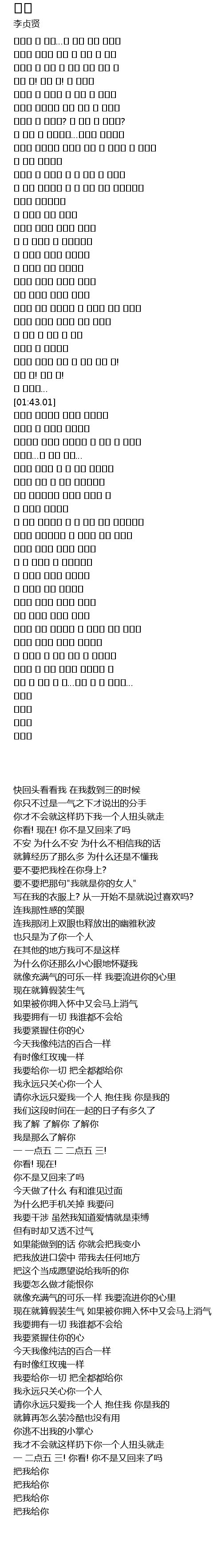 | [01:21.43] | 언제나 나만 사랑해줘 날 안아줘 너는 내꺼야 |