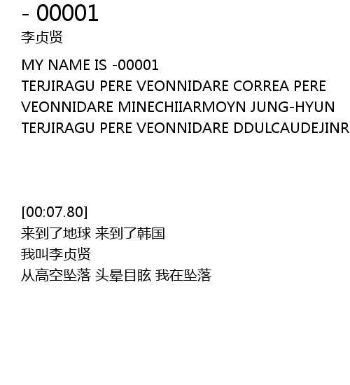 | [00:07.80] | MY NAME IS -00001 |