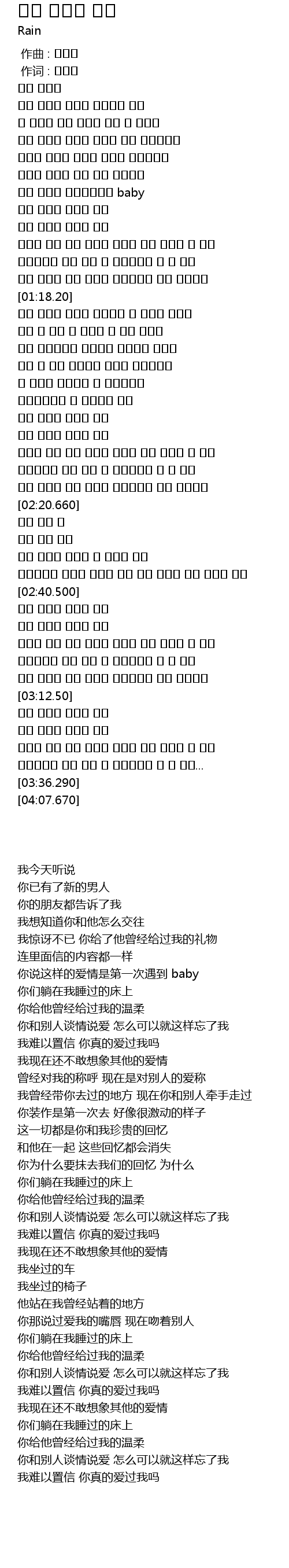 | [03:20.60] | 사랑을 나눠 다른 사람과 어떻게 벌써 이렇게 날 잊어 |