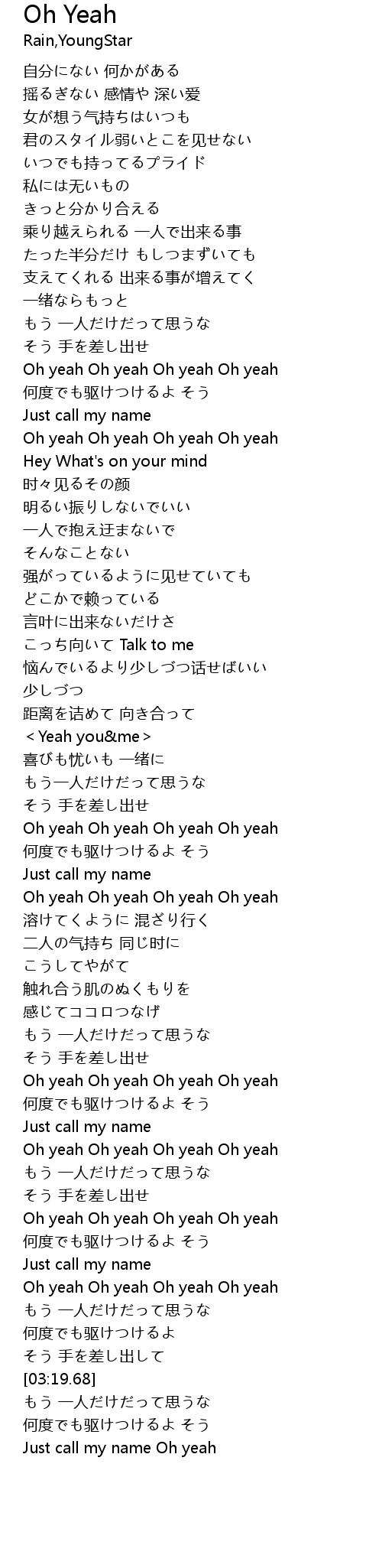 | [02:57.48] | Oh yeah Oh yeah Oh yeah Oh yeah |