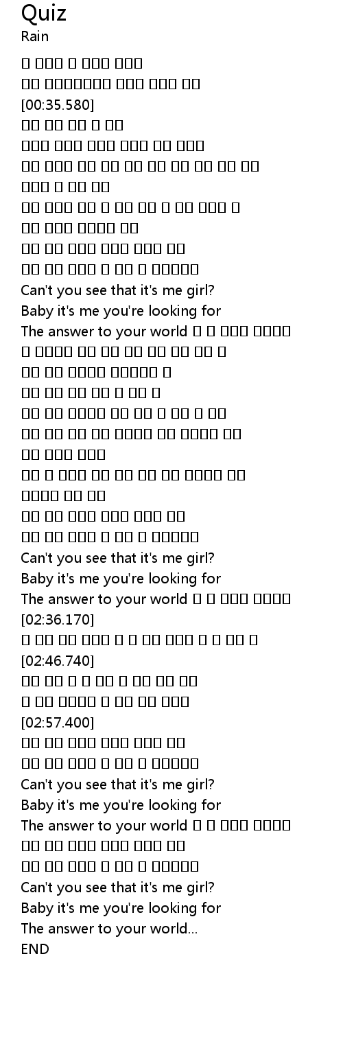 | [03:34.50] | Baby it's me you're looking for |