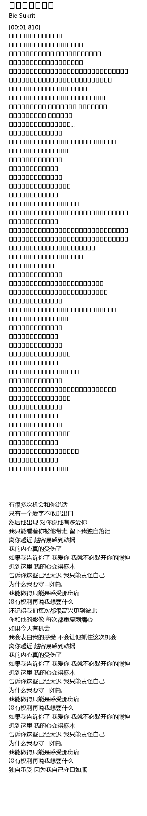 | [01:21.490] | ทำได้แค่เจ็บ ไม่มีสิทธิ์พูดเลย |