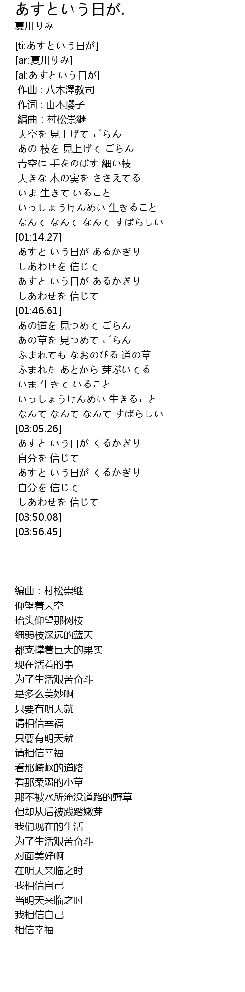 | [03:33.62] | しあわせを 信じて |