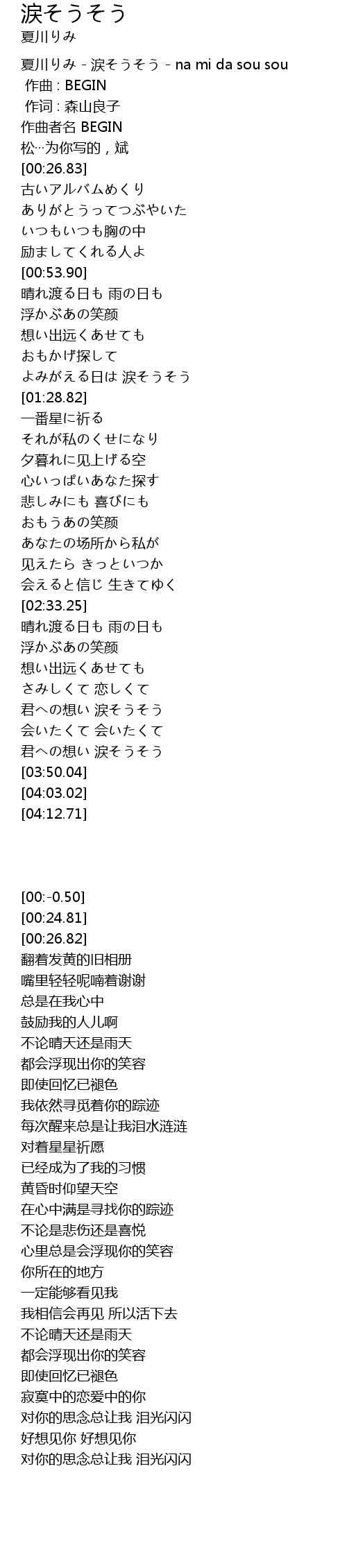 | [00:-0.50] | 夏川りみ - 涙そうそう - na mi da sou sou |