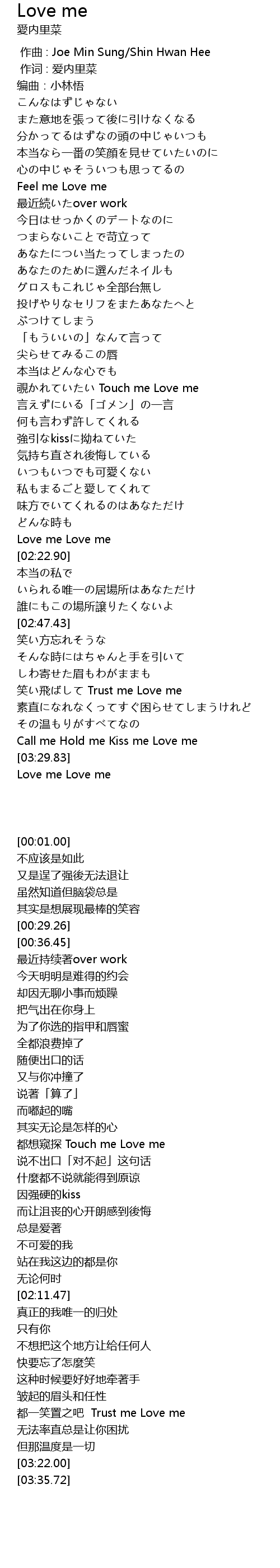 | [03:22.00] | Call me Hold me Kiss me Love me |