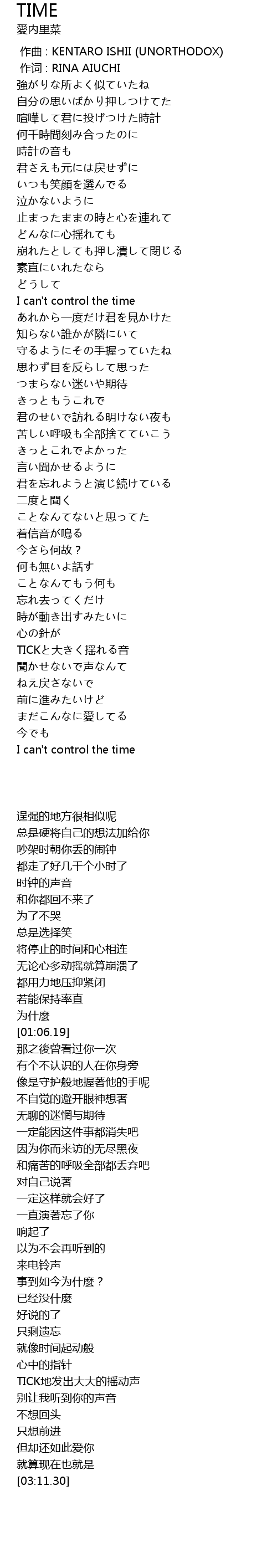 | [00:01.00] | 作词 : RINA AIUCHI |