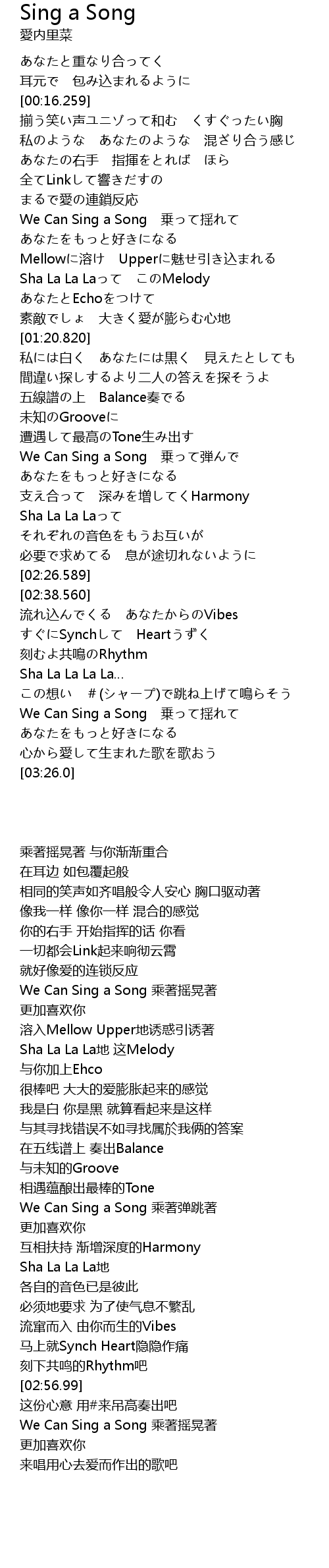 | [03:10.420] | We Can Sing a Song 乗って揺れて |