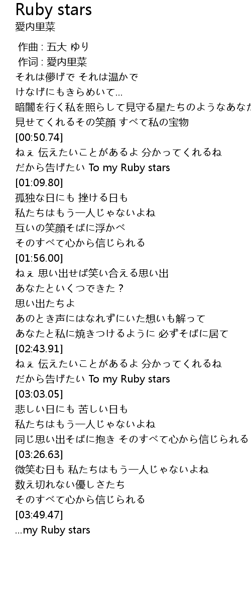 | [02:54.39] | だから告げたい To my Ruby stars |
