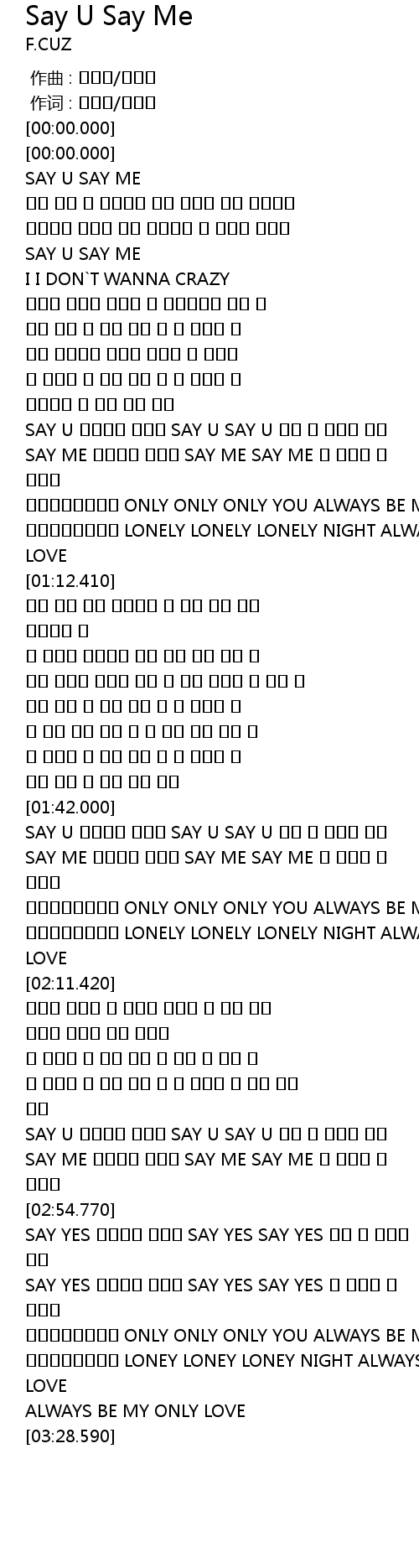 | [02:40.230] | SAY U 돌아온다 말해줘 SAY U SAY U 다시 내 곁으로 와줘 |