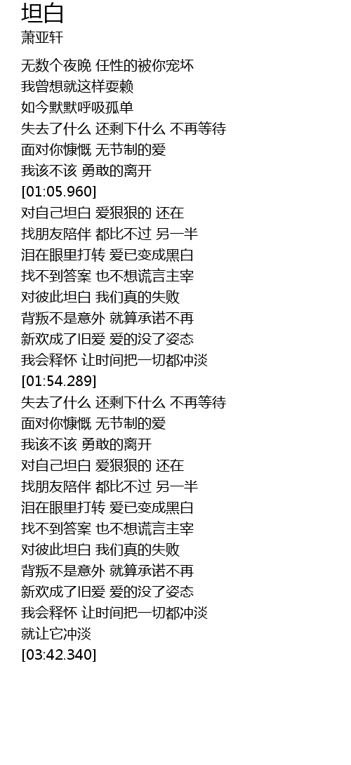 | [01:06.970] | 对自己坦白 爱狠狠的 还在 |