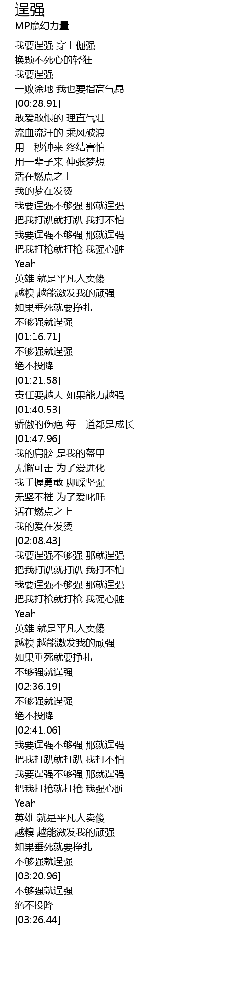 | [03:18.33] | 不够强就逞强 |
