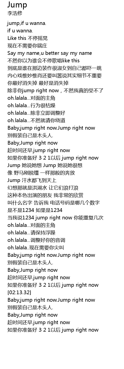 | [02:33.48] | Baby,Jump right now |