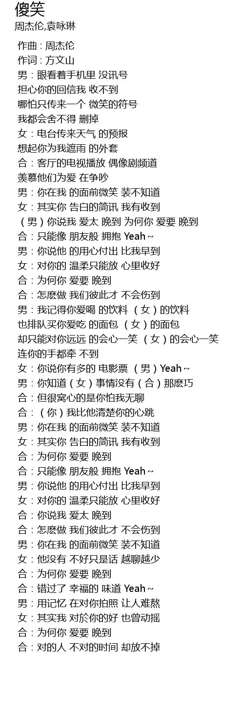 | [00:00.00] | 作曲 : 周杰伦 |