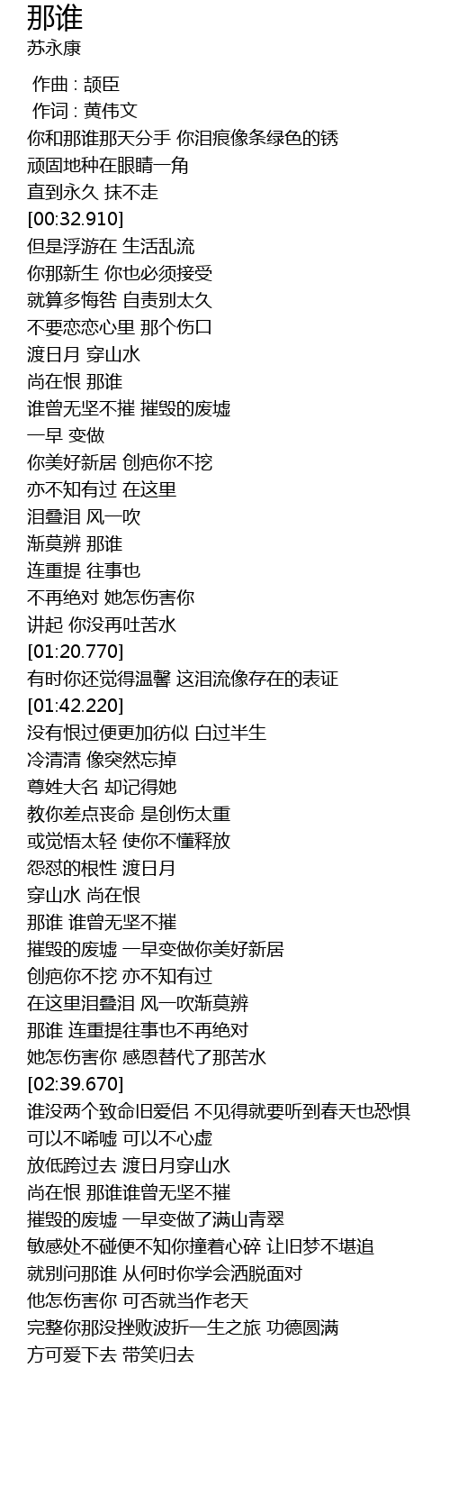 | [03:00.590] | 尚在恨 那谁谁曾无坚不摧 |