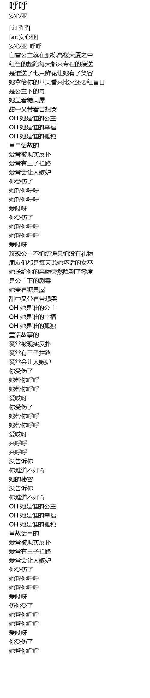 | [00:01.414] | 安心亚-呼呼 |