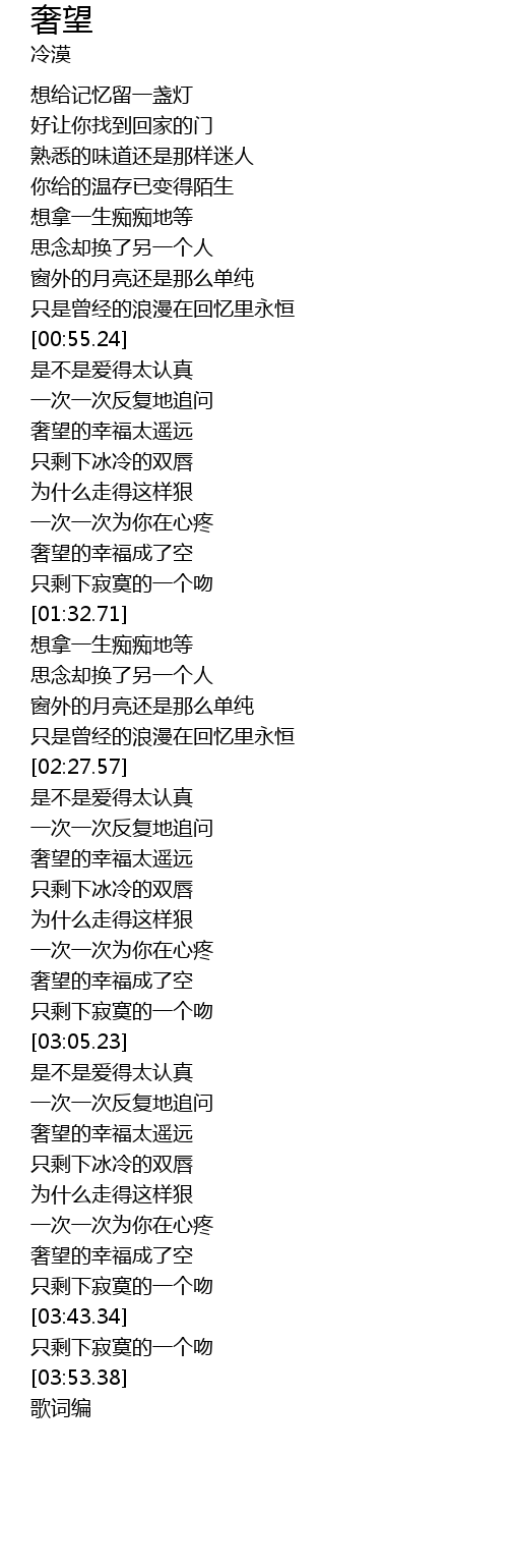 | [03:20.31] | 只剩下冰冷的双唇 |