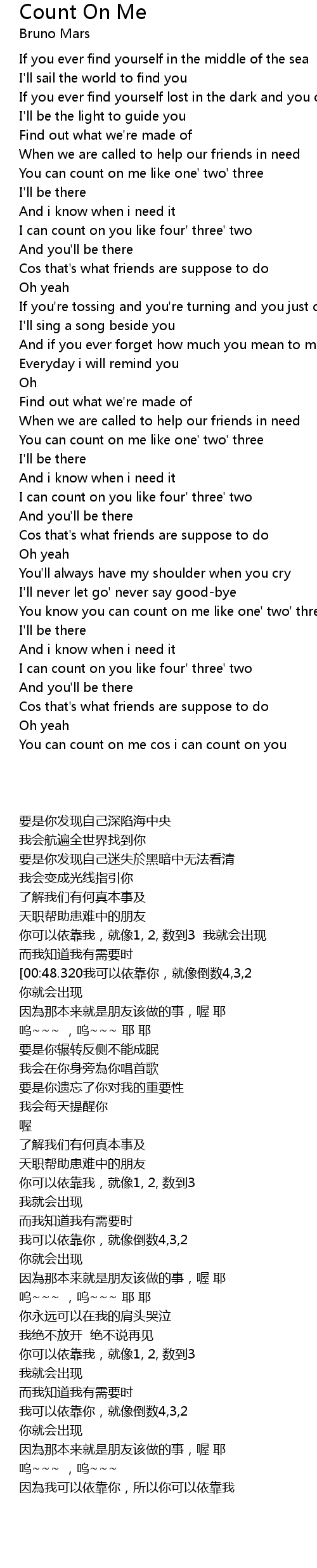 You can count on me cos i can count on you |