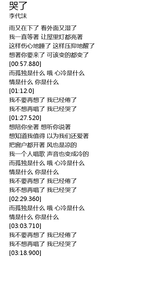 | [03:11.650] | 我不想再唱了 我已经哭了 |