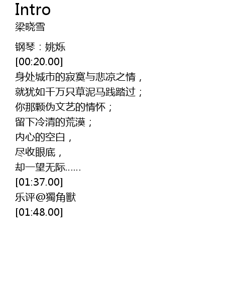 | [01:39.00] | 乐评@獨角獸 |