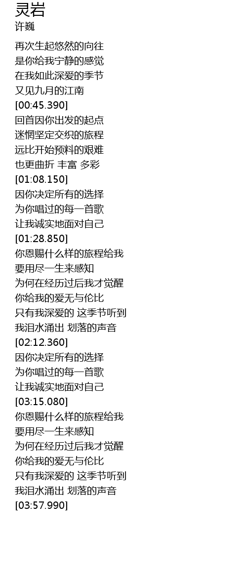| [03:29.210] | 为何在经历过后我才觉醒 |