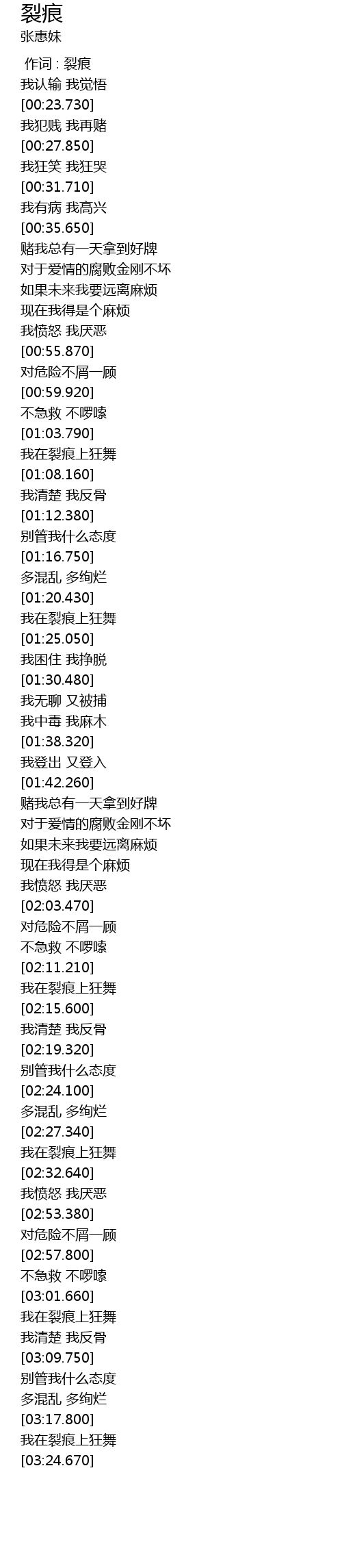 [00:00.00] 作词 : 裂痕