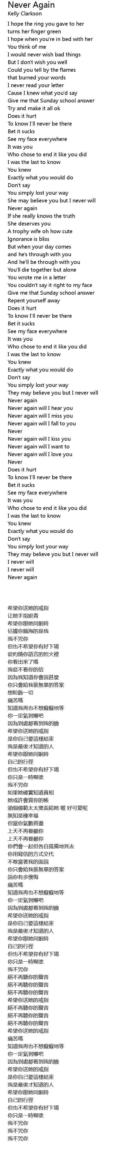 Never again will I love you |