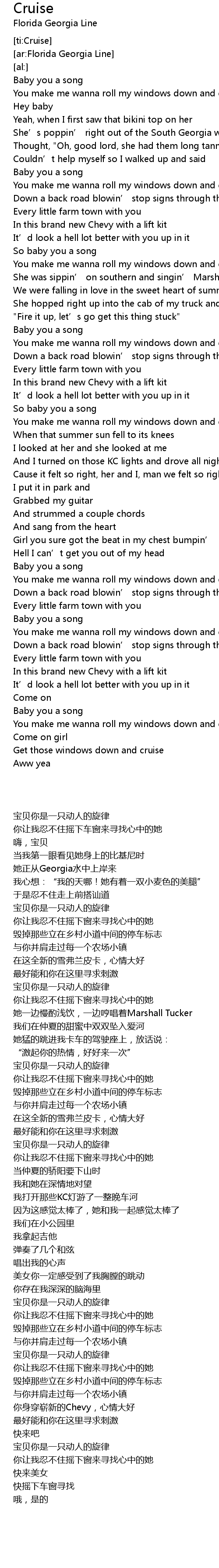| [02:41.18] | You make me wanna roll my windows down and cruise |