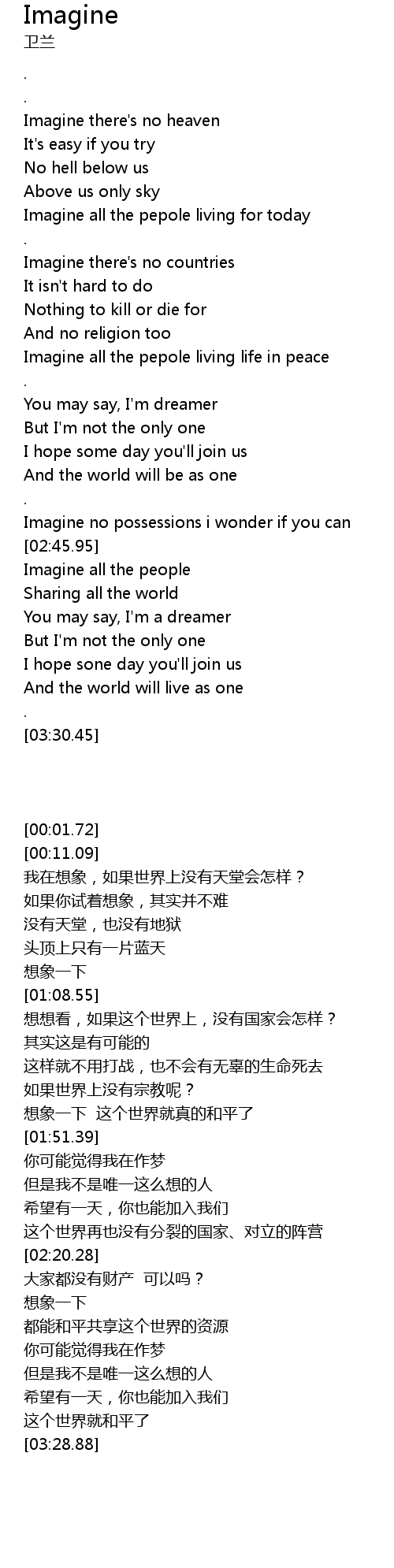 Imagine all the pepole living life in peace |