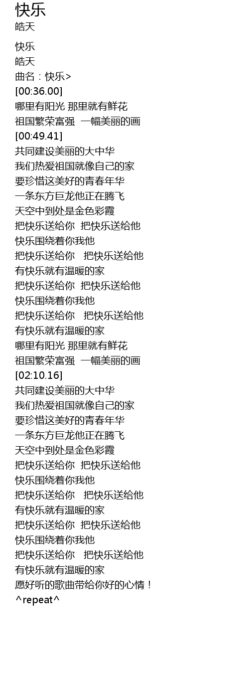 | [00:06.07] | 曲名:快乐> |