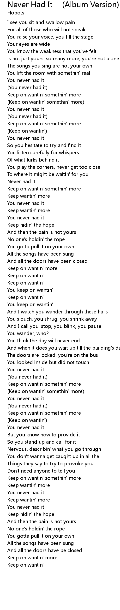 Keep on wantin' somethin' more |