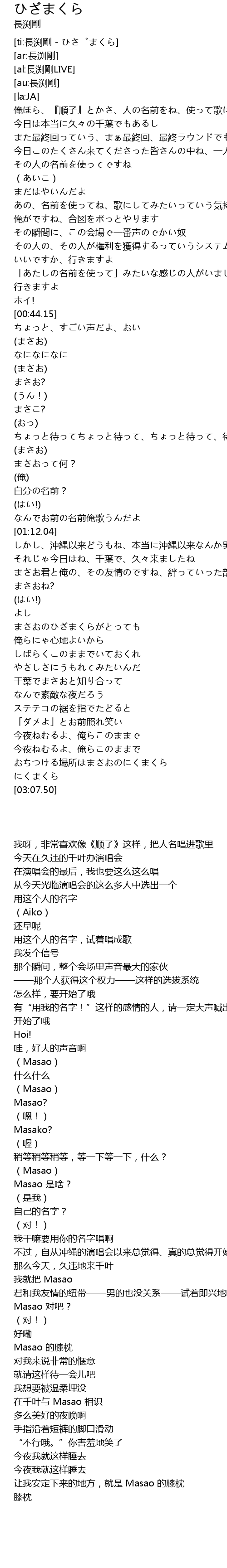 | [01:42.21] | Masao 的膝枕 |