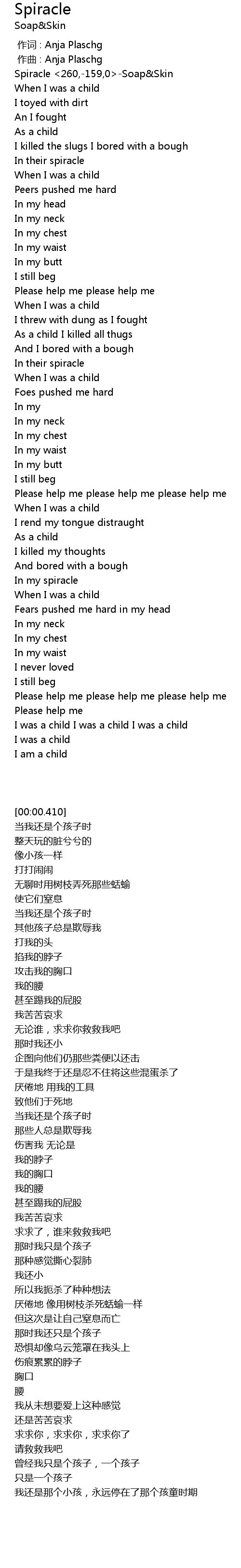 | [00:00.000] | 作词 : Anja Plaschg |