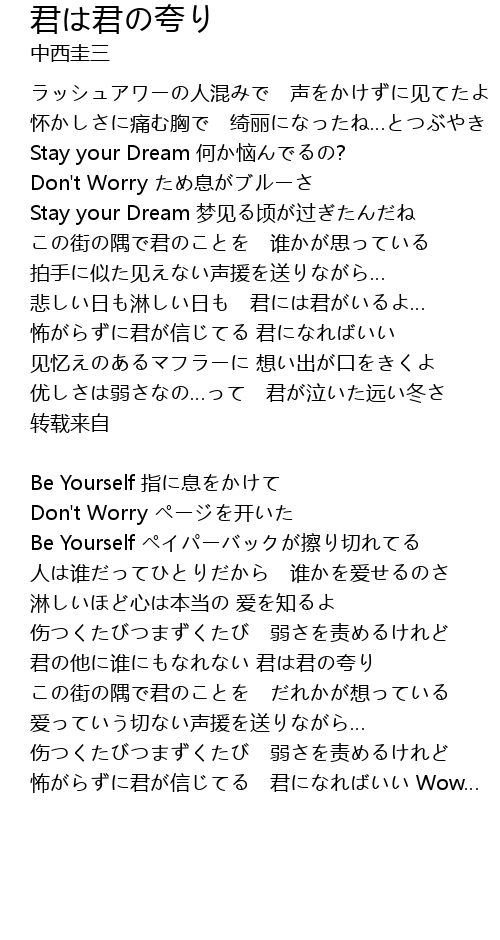 | 怖がらずに君が信じてる 君になればいい Wow… |