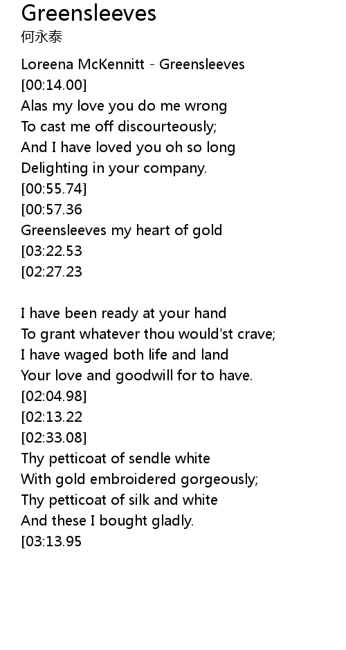 [00:00.00] Loreena McKennitt Greensleeves
