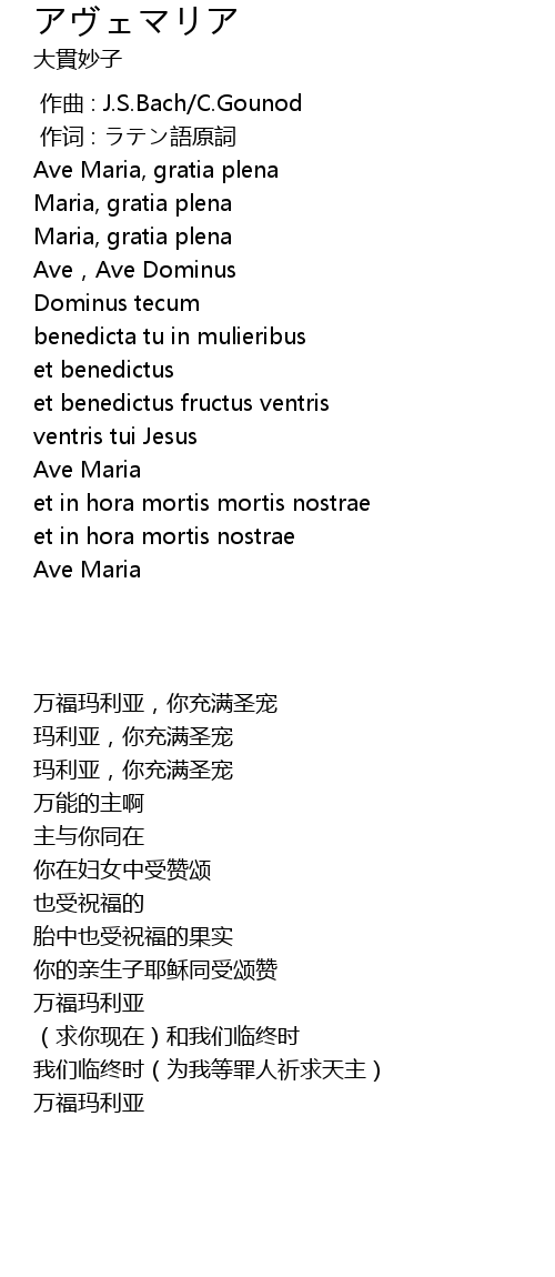 | [00:00.00] | 作曲 : J.S.Bach/C.Gounod |