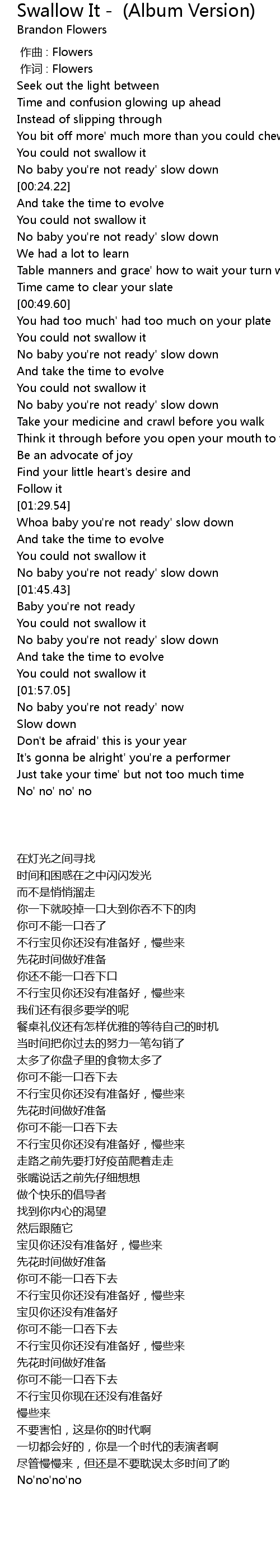 | [01:50.00] | No baby you' re not ready' slow down |