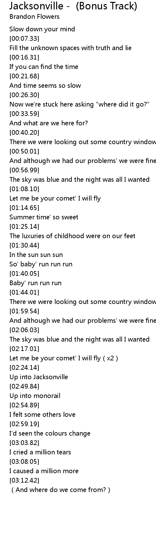 | [02:47.59] | Up into Jacksonville |