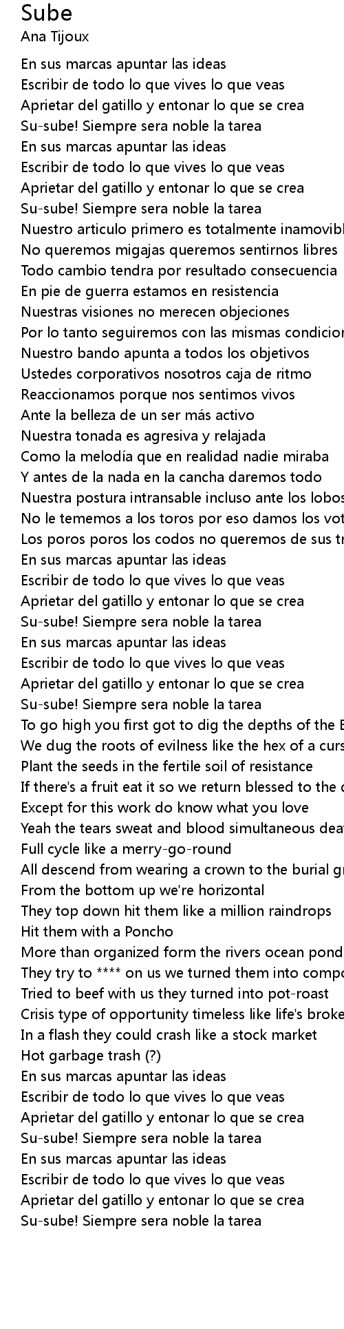 | [00:46.40] | No queremos migajas queremos sentirnos libres |
