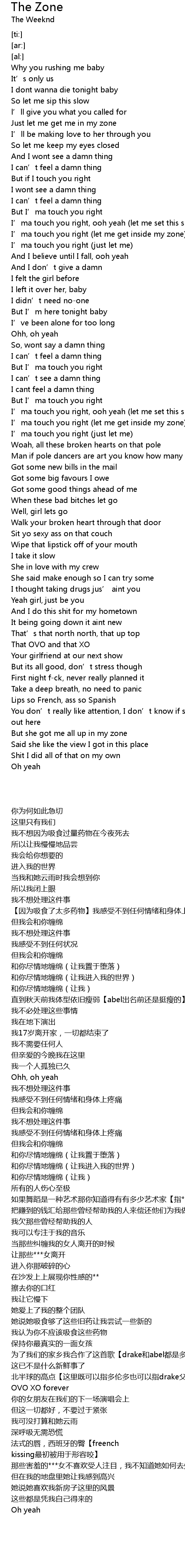 | [05:45.99] | 为了我们的家乡我合作了这首歌【drake和abel都是多伦多人】 |