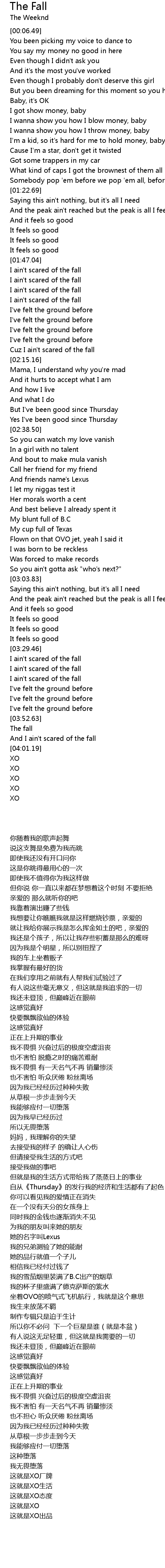 And I ain't scared of the fall |