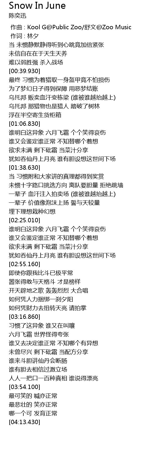 | [03:21.170] | 六月飞霜 世界怪得夸张 |