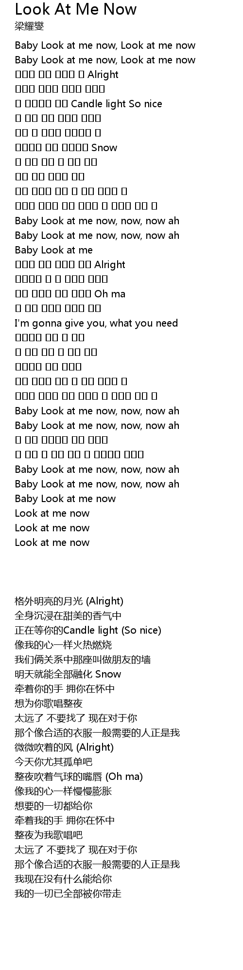 | [01:00.750] | Baby Look at me now, now, now ah |