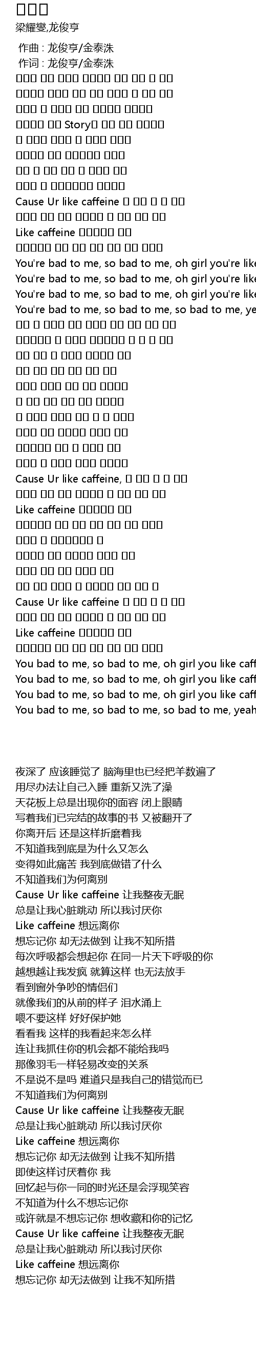 | [02:16.890] | Cause Ur like caffeine 让我整夜无眠 |