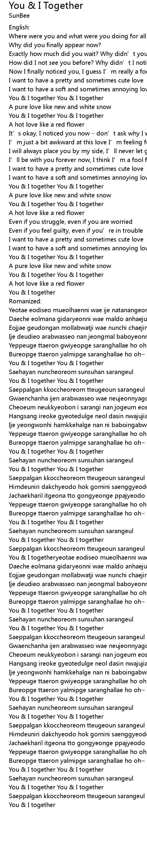 | You & I togetheryeotae eodiseo mueolhaenni wae ije natanangeoni | |