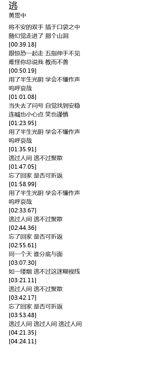 | [04:06.61] | 逃过人间 逃过人间 逃过人间 |