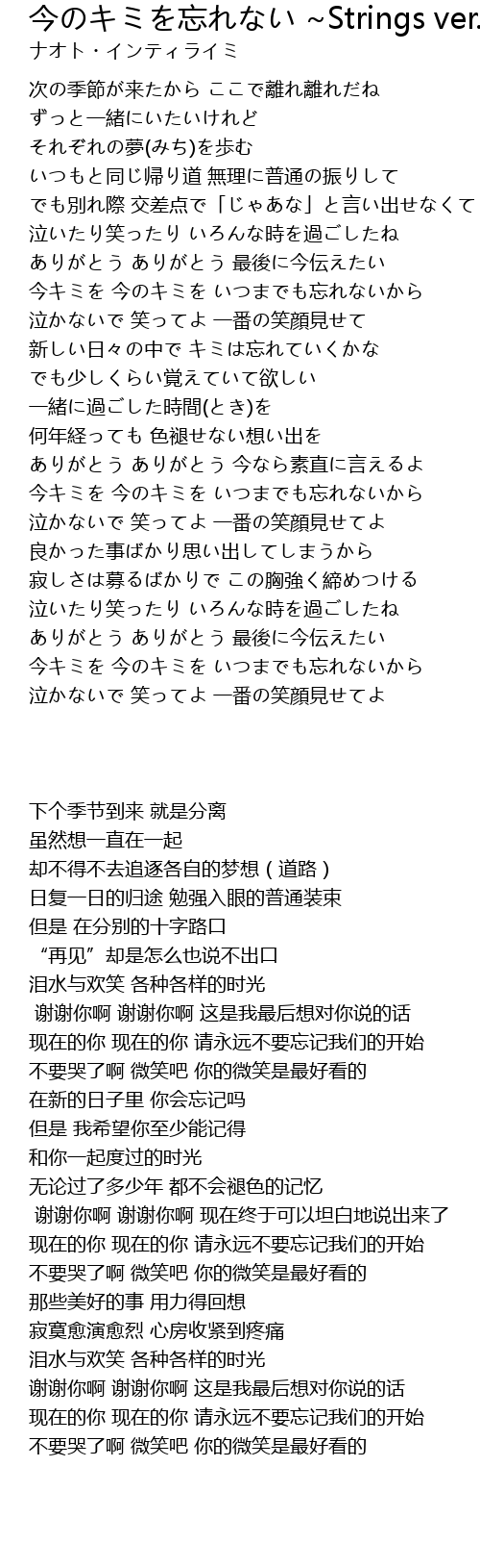 | 歌曲 | 今のキミを忘れない ~Strings ver.~ |