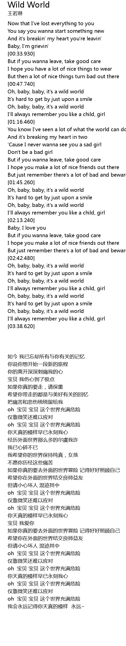 Oh, baby, baby, it's a wild world |